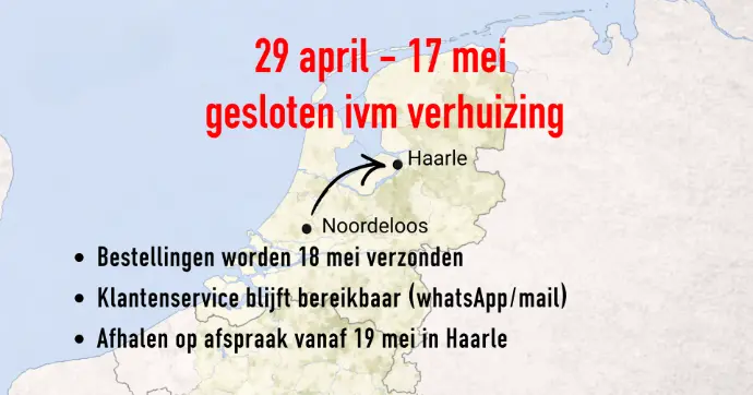 28 april versturen we de laatste keer voor onze sluiting ivm verhuizing.
